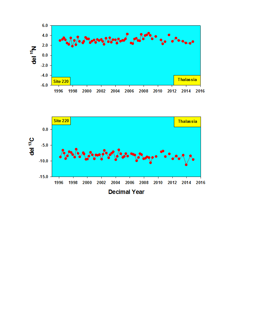 Time series of stable isotope data of green seagrass leaves, 1996-2015.