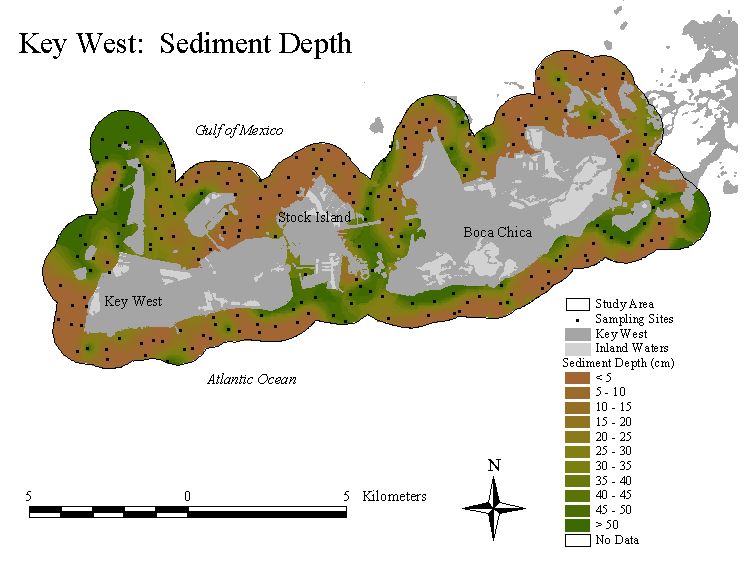 Physical data, such as water depth, substrate type, and sediment depth were also recorded at each site. Interpolated surfaces for physical data were also created using a universal kriging algorithm.