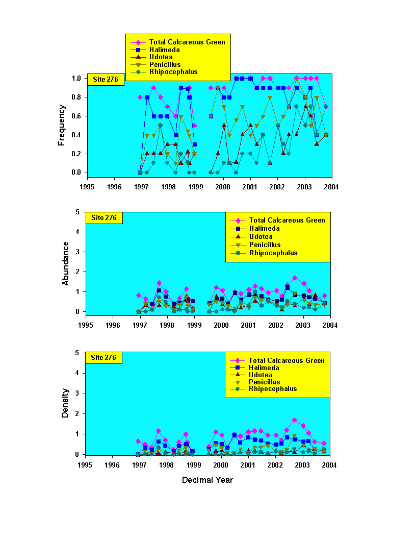 Time series of abundance for calcareous green algae for 1996-2003.